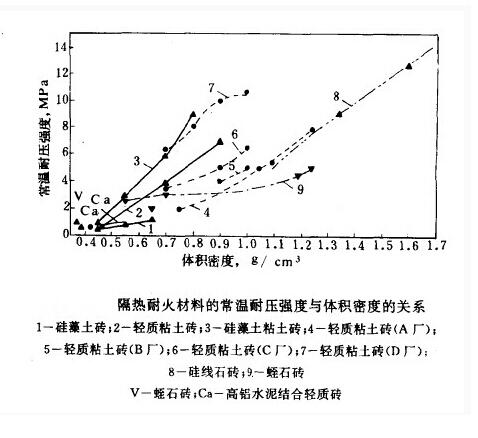 輕質保溫磚的強度與體積密度的關系,強度一般隨體積密度的提高而提高。應當注意的是組織結構類型對強度有很大的影響。在體積密度相同的情況下,顯然,固相連續的材料的強度較高,而氣相連續的材料的強度則較低。例如泡沫法生產的輕質保溫磚的強度要出用可燃物法生產的輕質保溫磚的強度高。