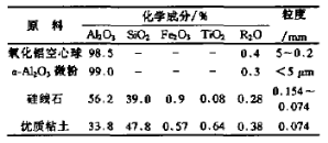 主要原料成分及粒度如表1。