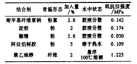 表1 幾種結(jié)合劑對(duì)耐火纖維紙的增強(qiáng)效果