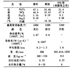 表2 耐火纖維紙的主要性能