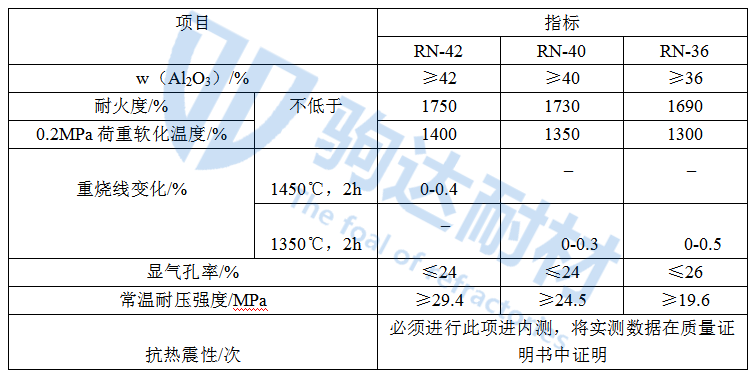熱風爐用黏土磚的理化指標