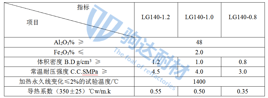 高鋁輕質(zhì)隔熱磚理化指標(biāo)